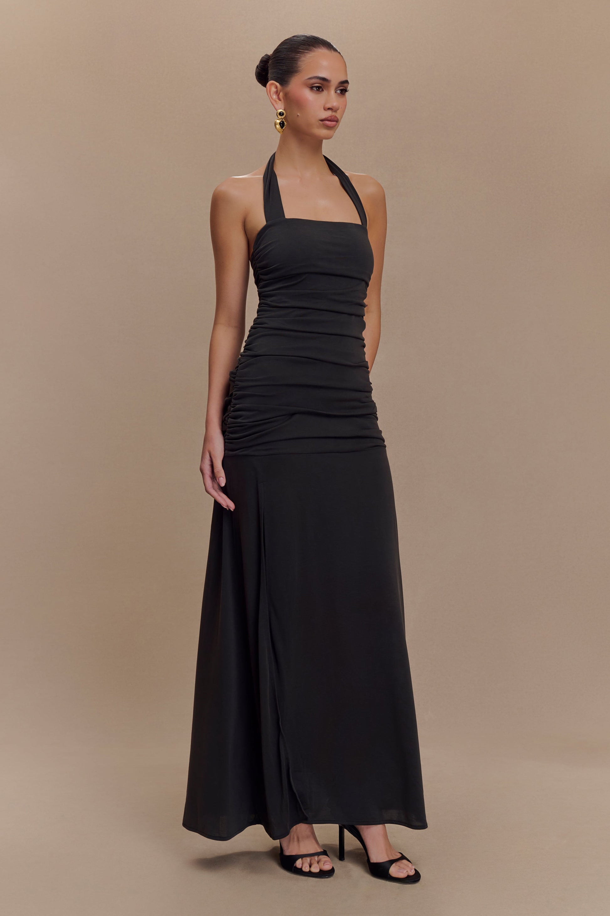 Vestido largo maxi halter de jersey con acabado en durazno Bentley - Negro