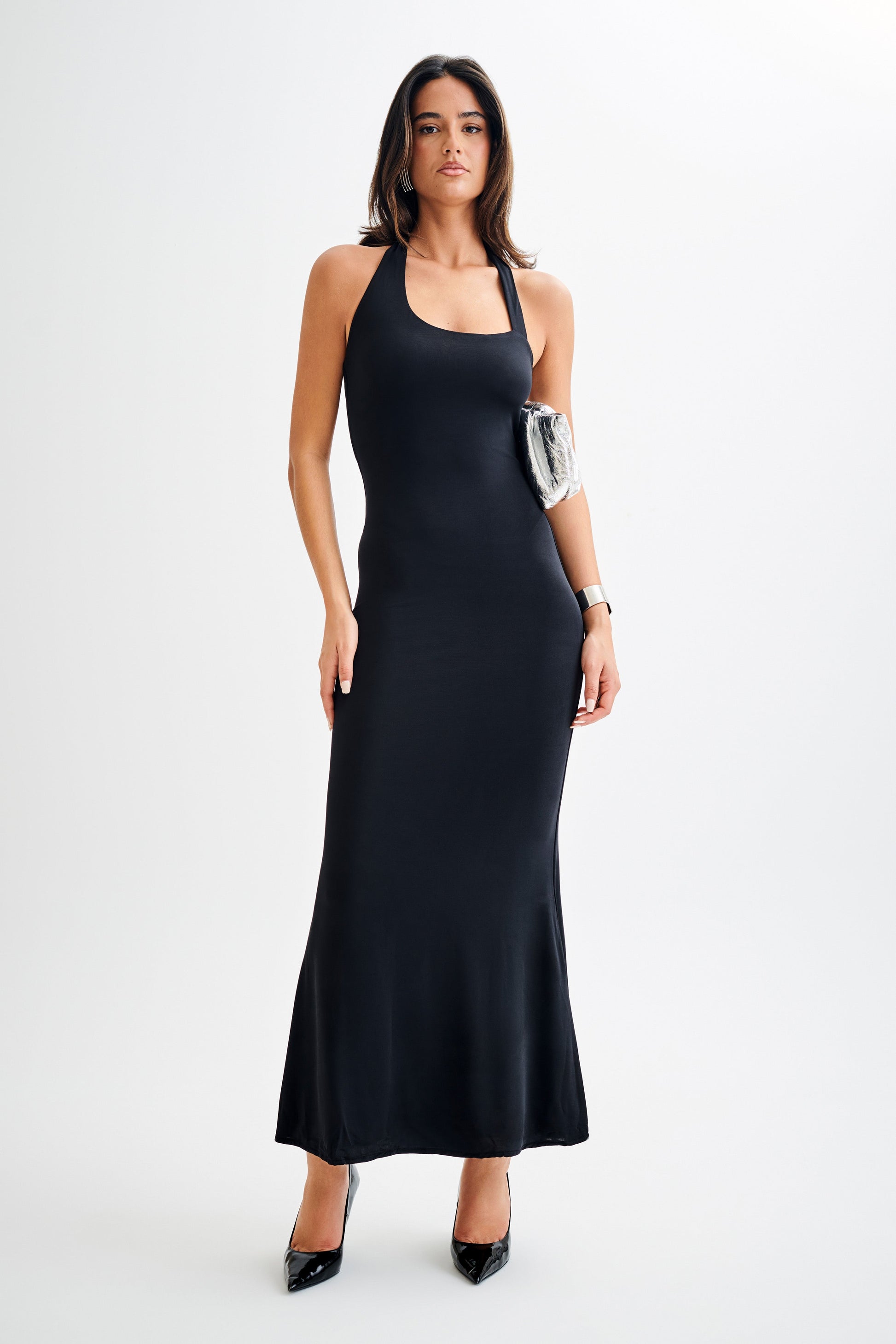 Vestido Maxi Asimétrico Slinky Marianne - Negro