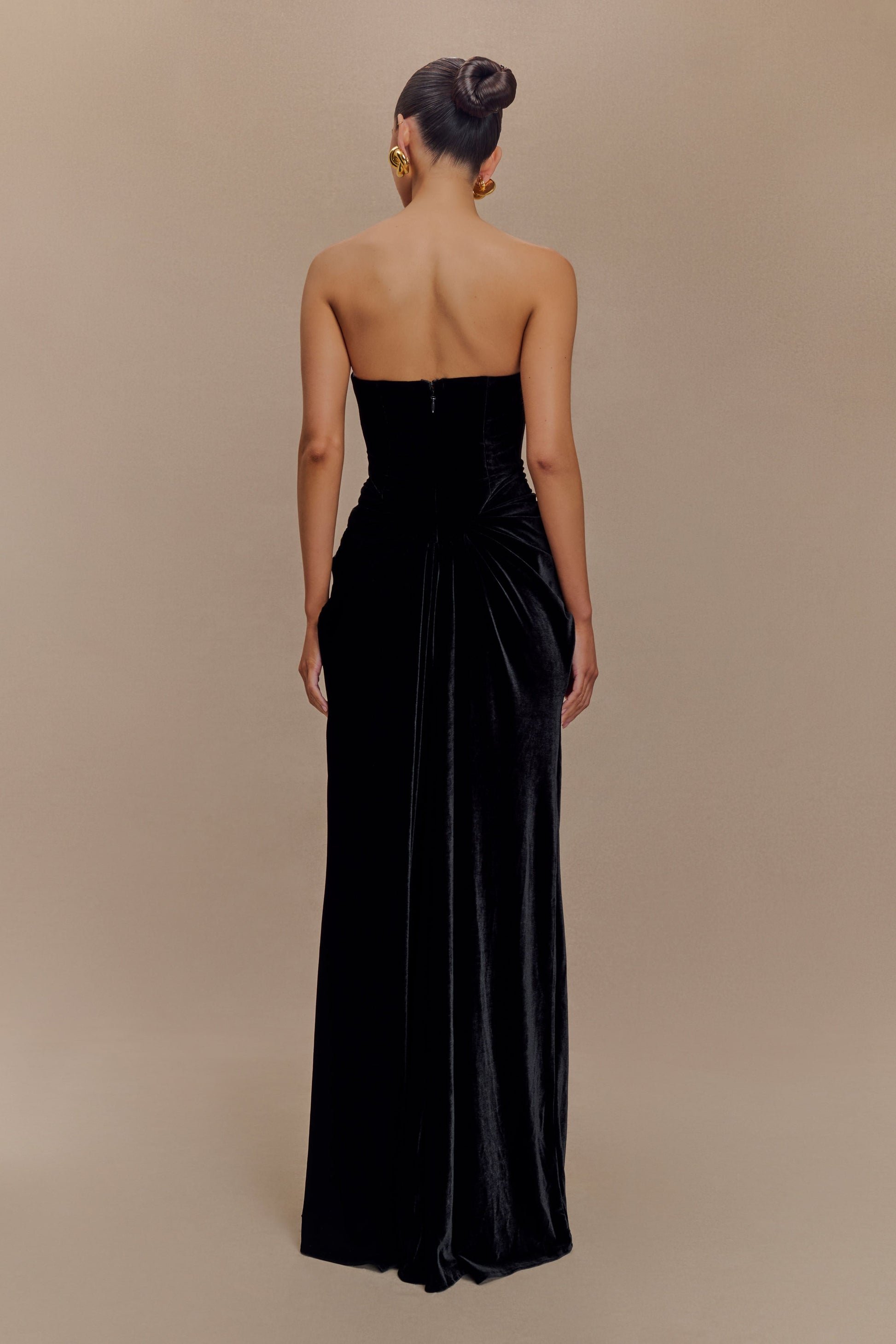 Vestido largo sin tirantes de terciopelo Paige - Negro
